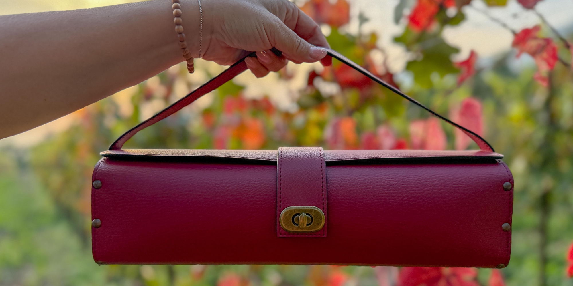 porta bottiglie a sacchetto con manico in ecopelle nautica