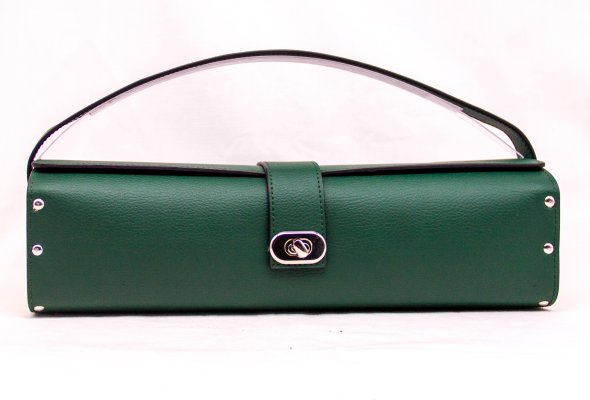 Portabottiglia in ecopelle nautica con laterale di legno di abete, chiusura achiavistello e manico, per contenere bottiglie di massimo cm 33 di altezza e 9cm di diametro. Verde inglese