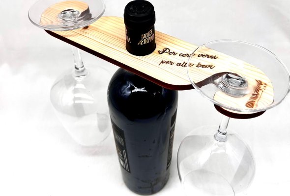 Portacalici da inserire nel collo della bottiglia in legno di abete, con varie frasi incise